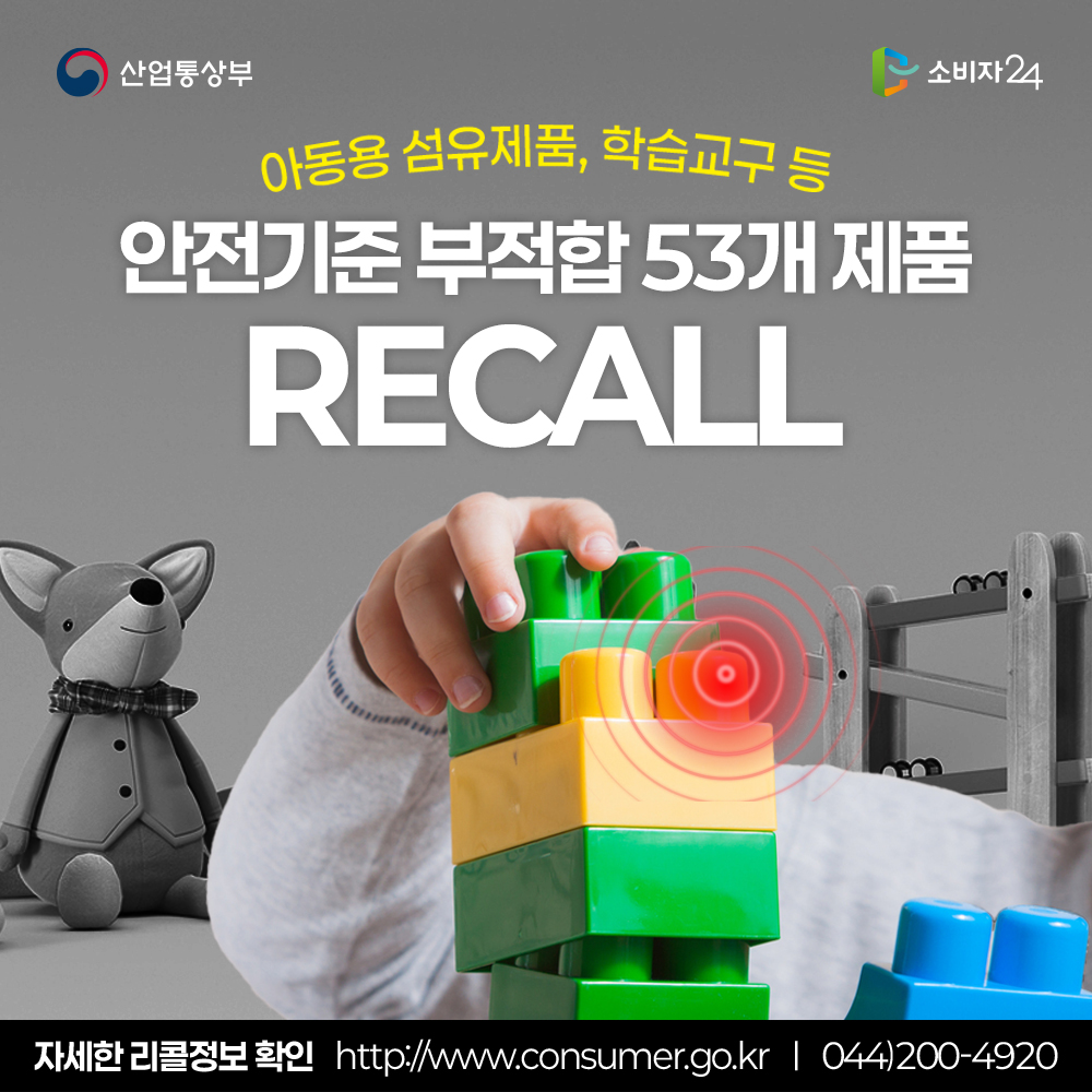 어린이제품·전기용품·생활용품 총 53개 제품이 안전기준 부적합으로 리콜 명령을 받았습니다 😨